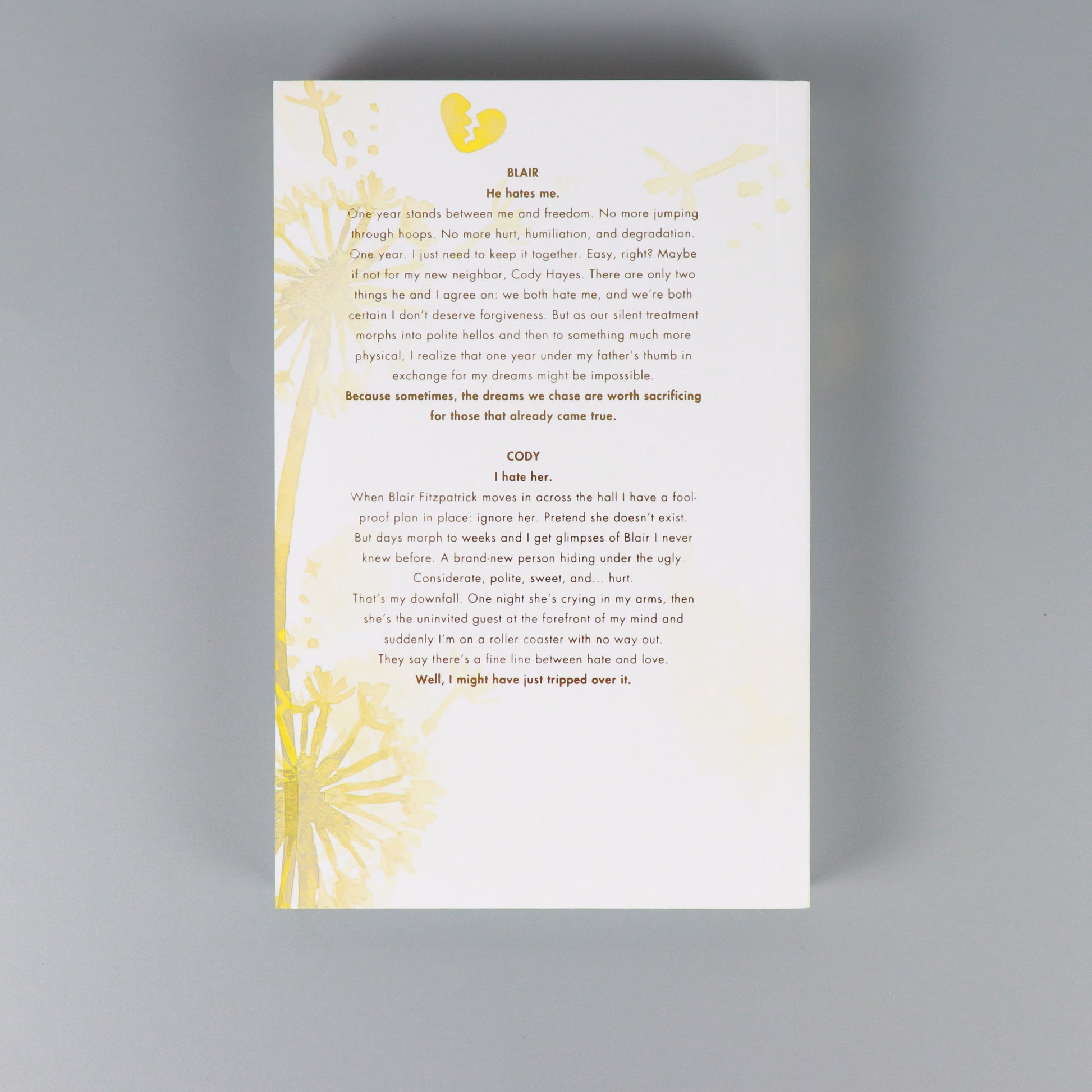 One year stands between me and freedom. No more jumping through hoops. No more hurt, humiliation, and degradation. One year. I just need to keep it together. Easy, right? Maybe if not for my new neighbor, Cody Hayes. There are only two things he and I agree on: we both hate me, and we’re both certain I don’t deserve forgiveness. But as our silent treatment morphs into polite hellos and then to something much more physical, I realize that one year under my father’s thumb in exchange for my dreams might be impossible.